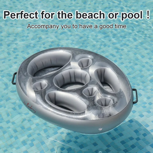 Inflatable Ice Bar Swimming Ring, Floating Drink Tray, with Multiple Cup Holders, Perfect for Pool Parties & Summer Gatherings