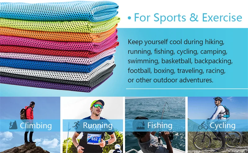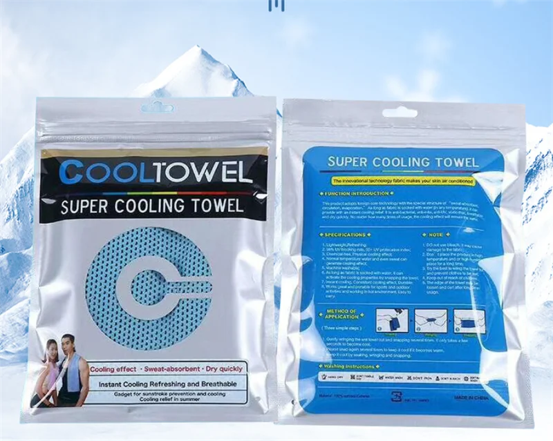 1.Safe & Eco-Friendly: Cooling towel is made of super ice hyper-evaporative breathable material. Working on the physical evaporation of moisture. No chemicals are used in the making of the cooling towels, free from any chemical additive and smell.
