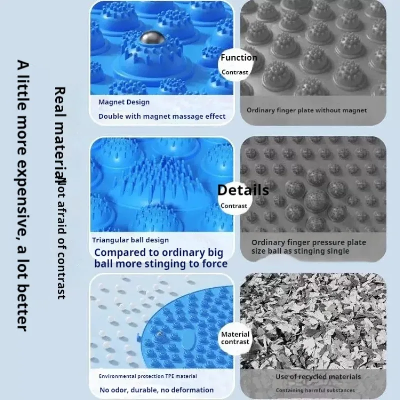 - Unique design mat has a lot of massaging that will stimulate, stretch and relax key muscles and tendons on the bottom of your feet, arch, pad and toes. This mat will promote and well-being, by working out muscle knots in the arch and arch supporting muscles.