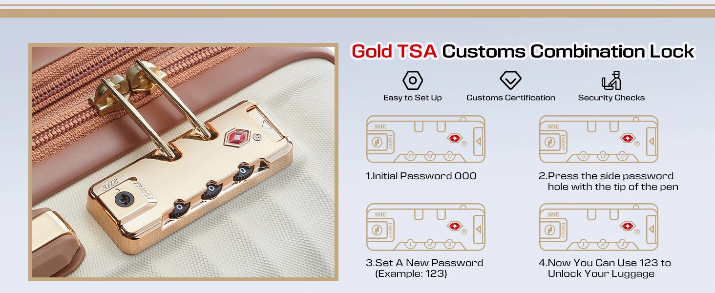 Multiple Protection Systems:The luggage is equipped with YKK explosion-proof zippers, which are firm and smooth, preventing embarrassment of bursting the luggage during the journey. In addition, the suitcase is equipped with a TSA combination lock to ensure that security personnel can safely check the luggage when needed.