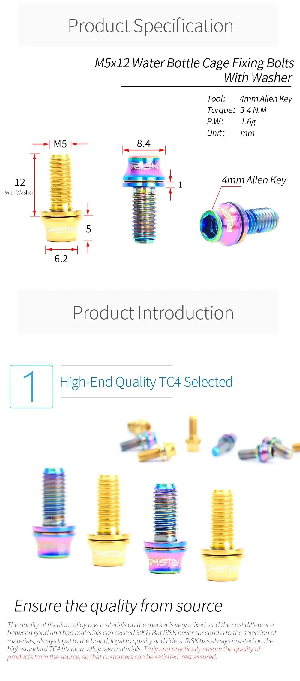 M5x12mm Titanium Alloy Bike Bottle Holder Screw Bicycle Water Bottle Cage Bolts Mountain Road Bike Accessories