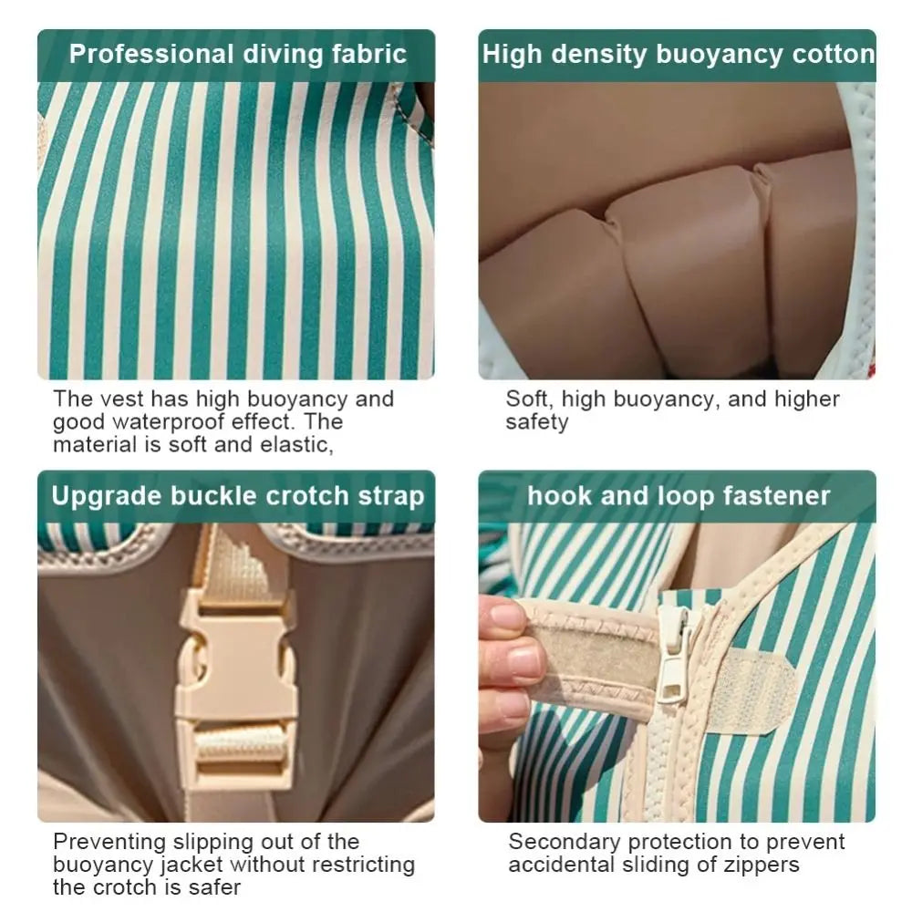 5. Stylish and Exquisite Design: The swim jacket boasts an aesthetically pleasing and refined appearance, suitable for both boys and girls. It combines functionality with visual appeal, making it an ideal choice for children.