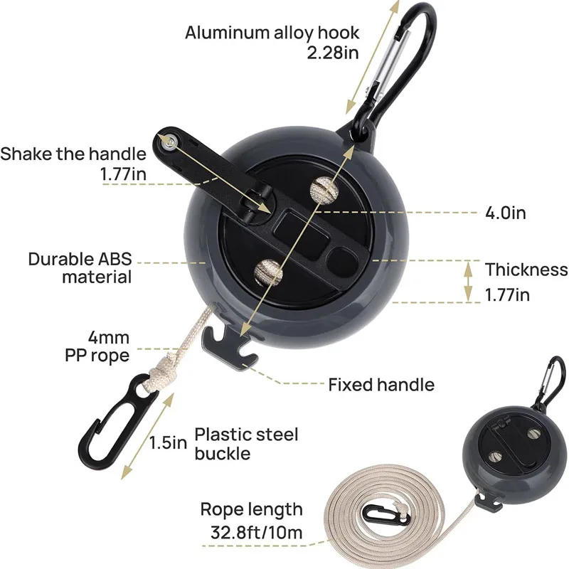 【Sturdy&Durable】The retractable outdoor clothesline is made of thickened nylon, which is not easy to fade, is tight, and is not easy to stretch. It has a strong bearing capacity and can support wet heavy clothes, hand-washed items, etc. Suitable for drying clothes indoors and outdoors