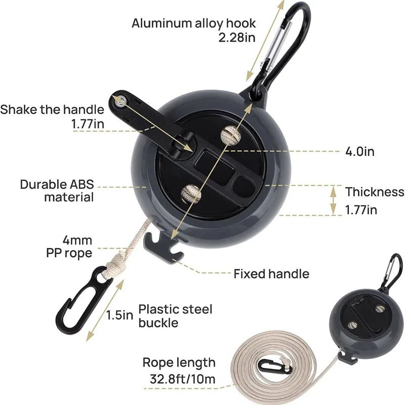 Outdoor Retractable Clothesline Adjustable 32ft/10M Camping Clothesline Portable Clothes Drying Rack Windproof Washing Line Rope