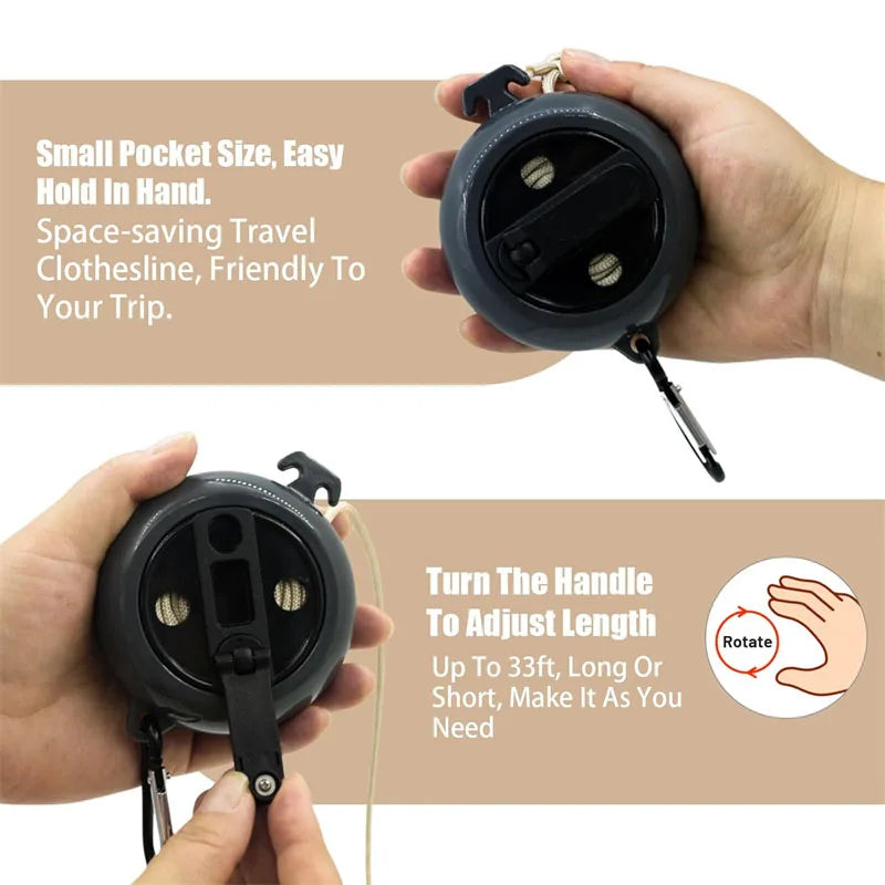 【Portable Clothes Line】The retractable clothes line is the size of a pocket and can be easily carried in a bag, or held in your hand. It is lightweight, takes up little space, and will not cause any burden on your travel. Travel clothes line is suitable for carrying and is an ideal choice for travelers and campers