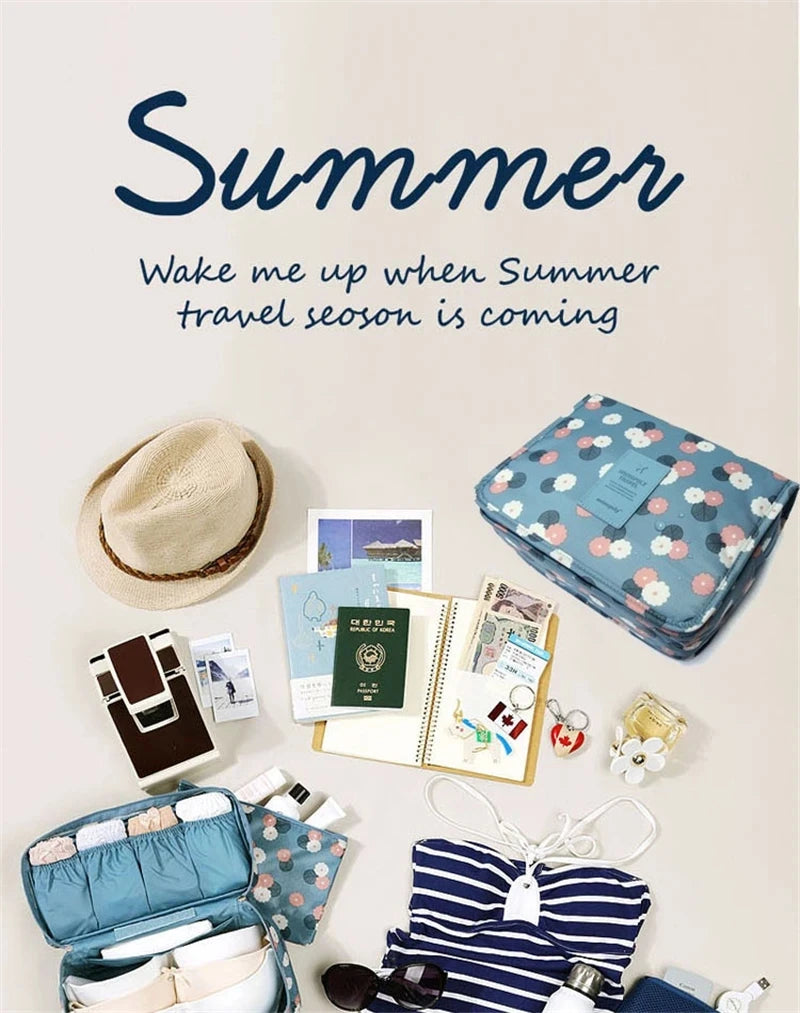 Polyester Hook Cosmetic Bag Women Makeup Bag High Capacity Toiletry Storage Pouch Travel Make Up Organizer Waterproof Beauty Bag