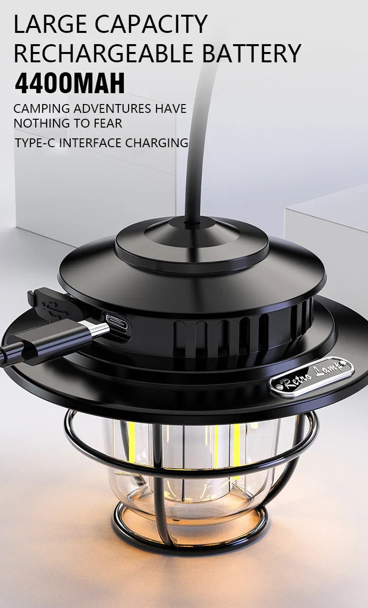 Retro Portable Camping Lantern Waterproof Emergency Light Stepless Dimmable Hanging Tent Lamp for Outdoor Hiking