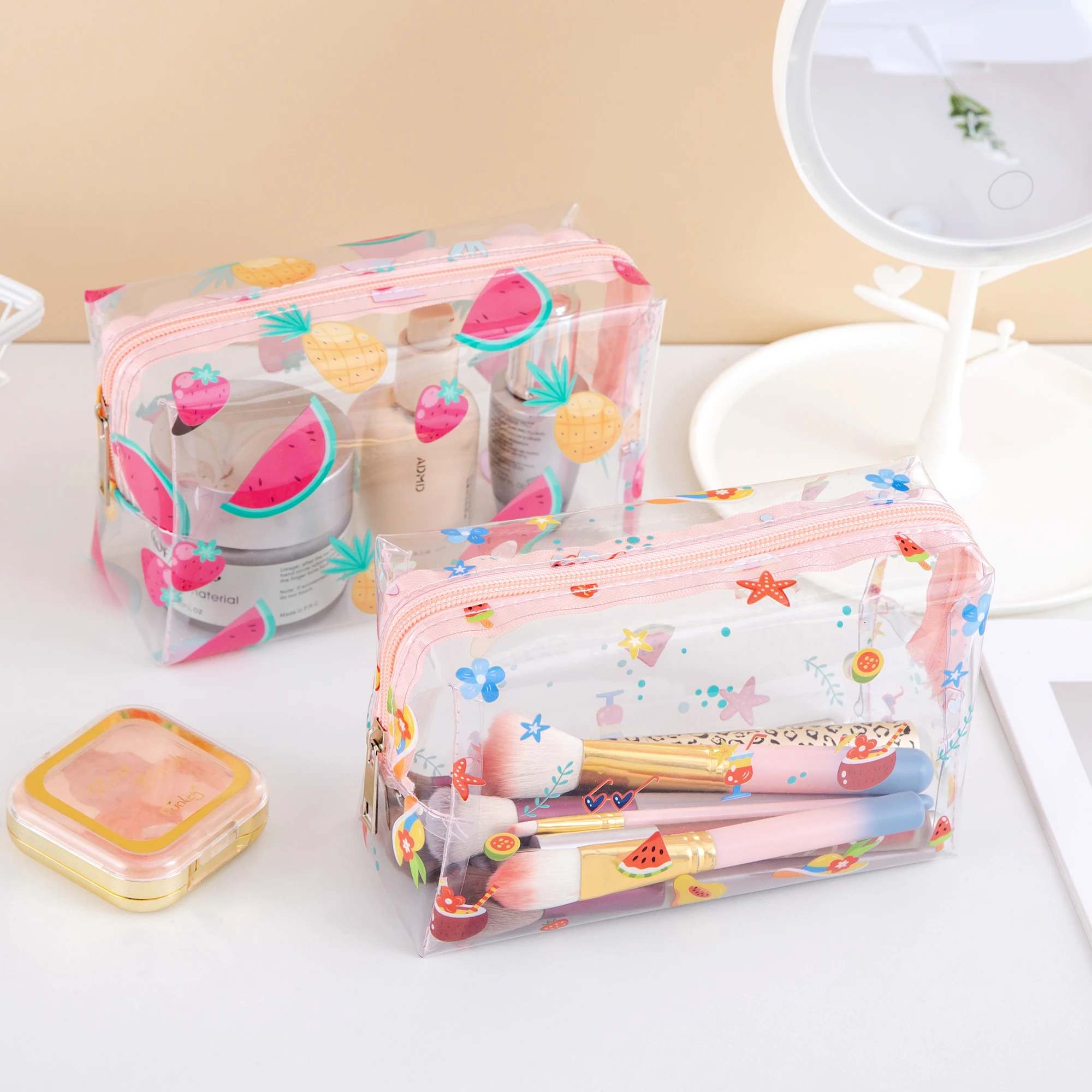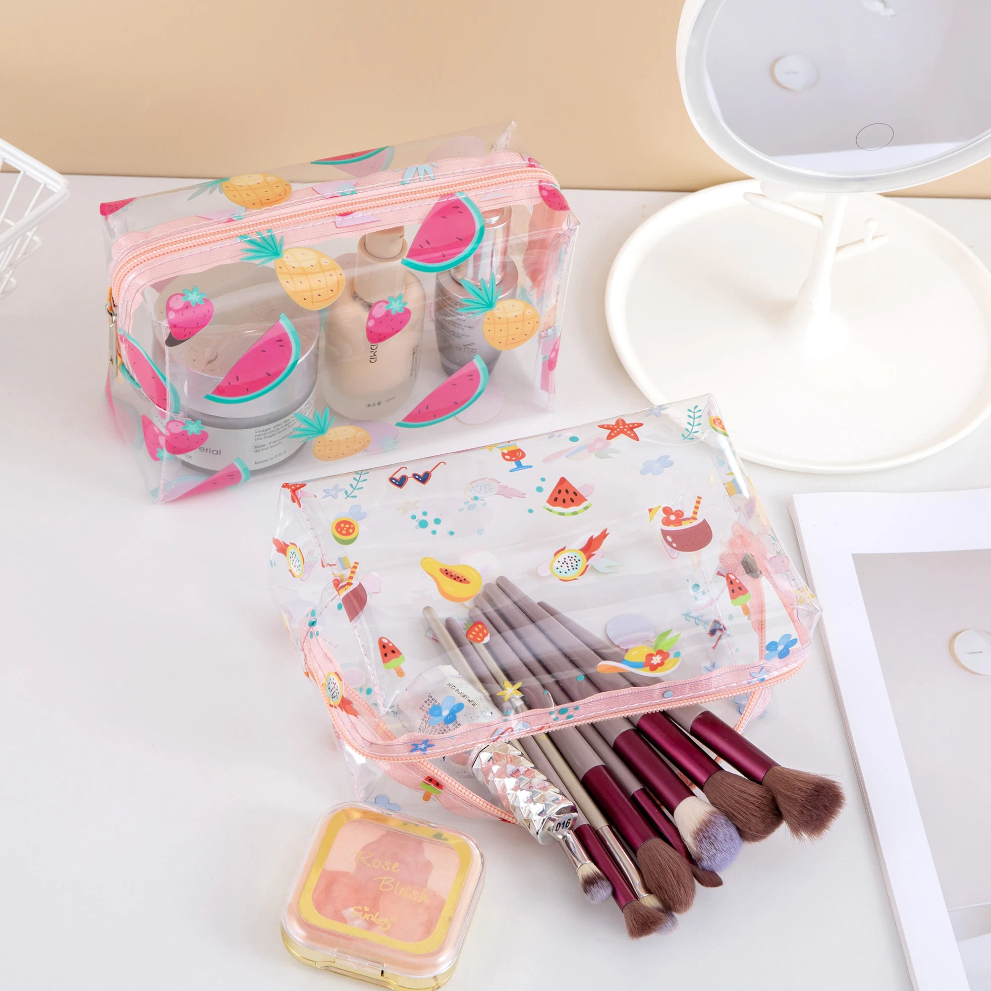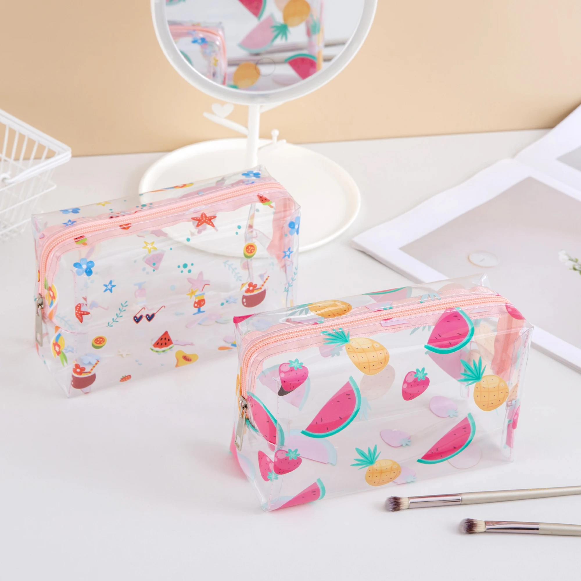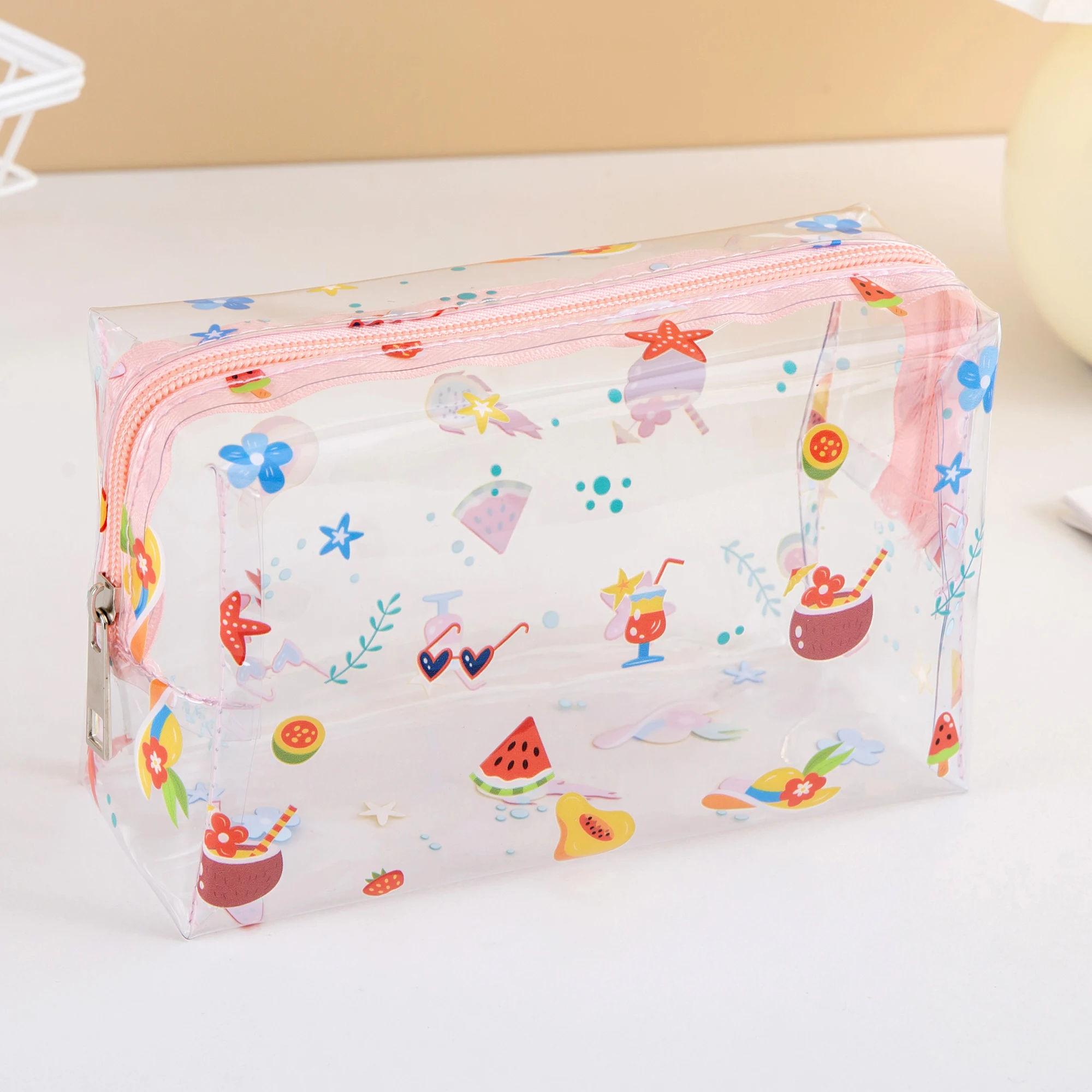 Summer Cute Waterproof Clear printing Cosmetics Bag PVC Zippered Toiletry Carry Pouch for Beach Swimming Travel