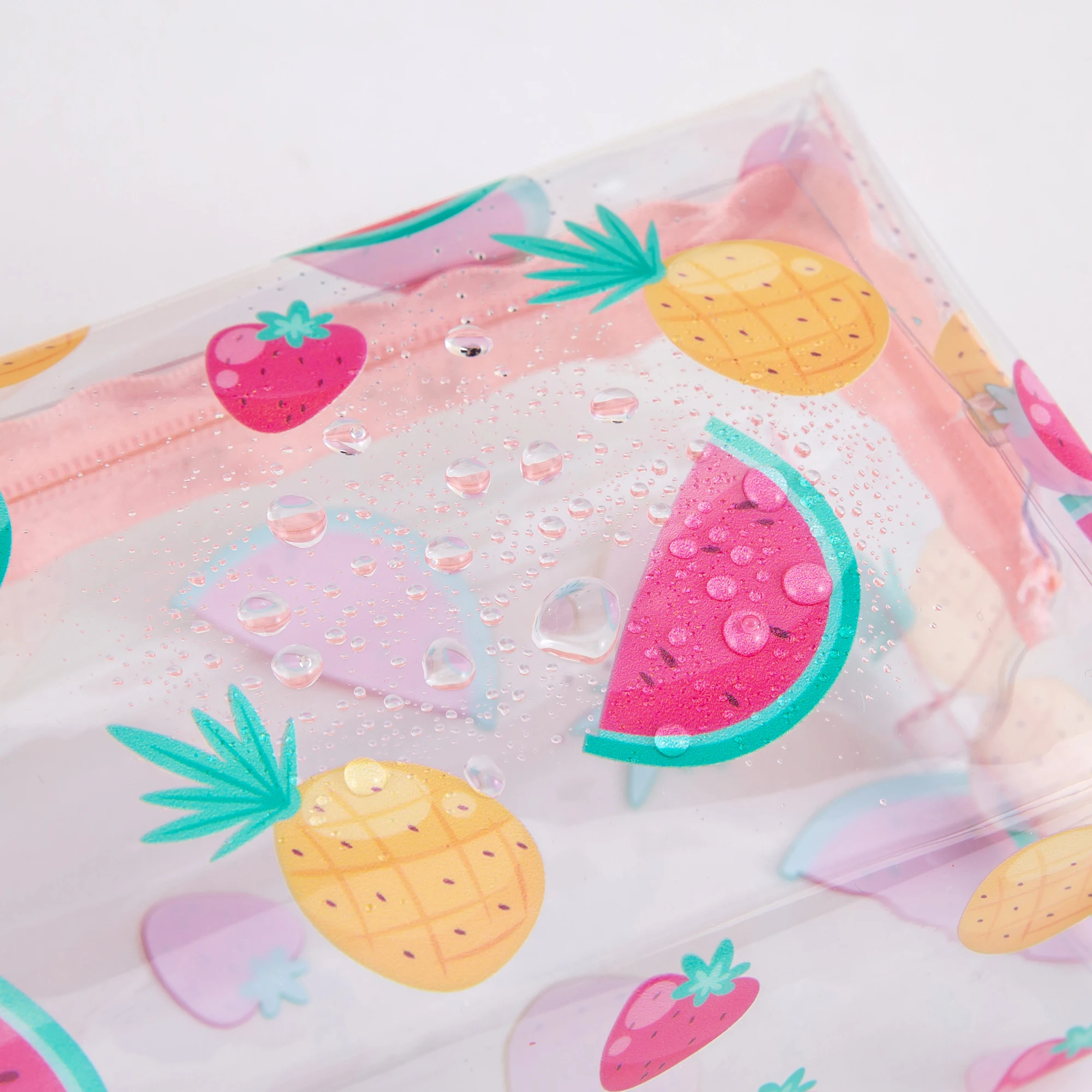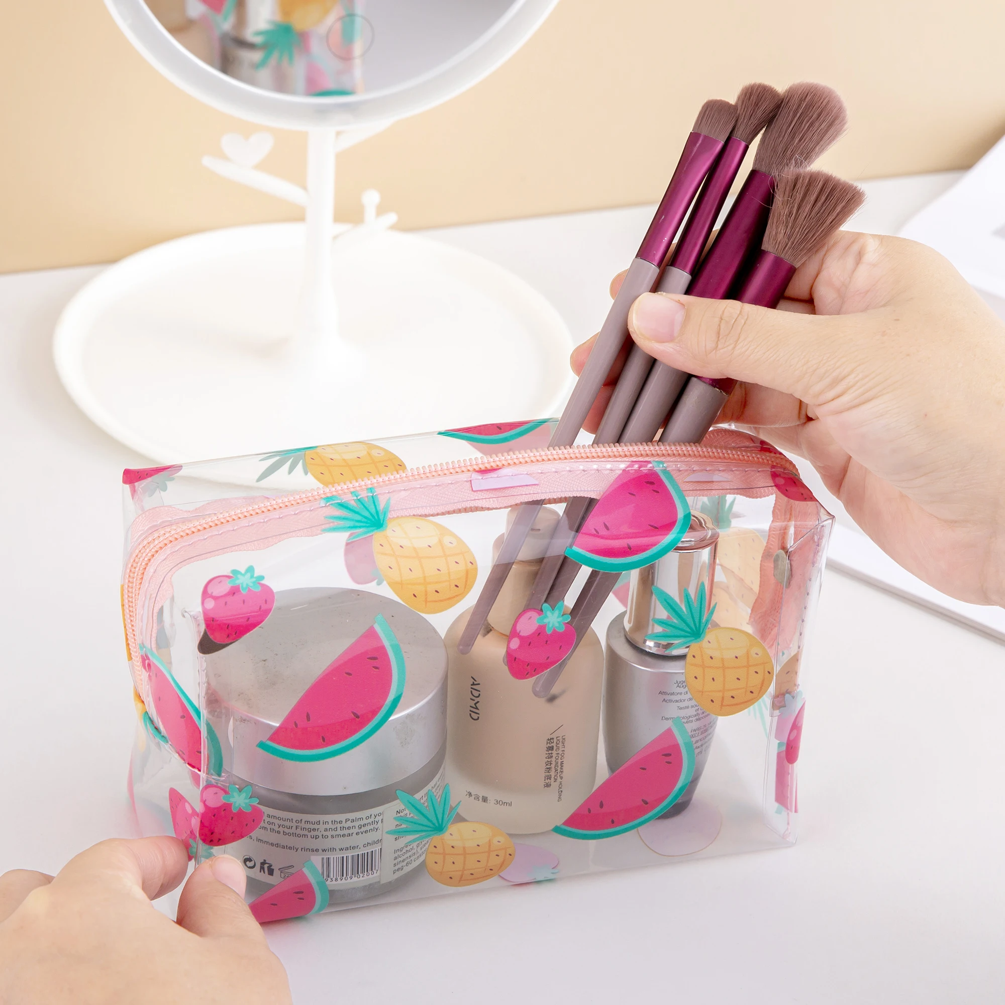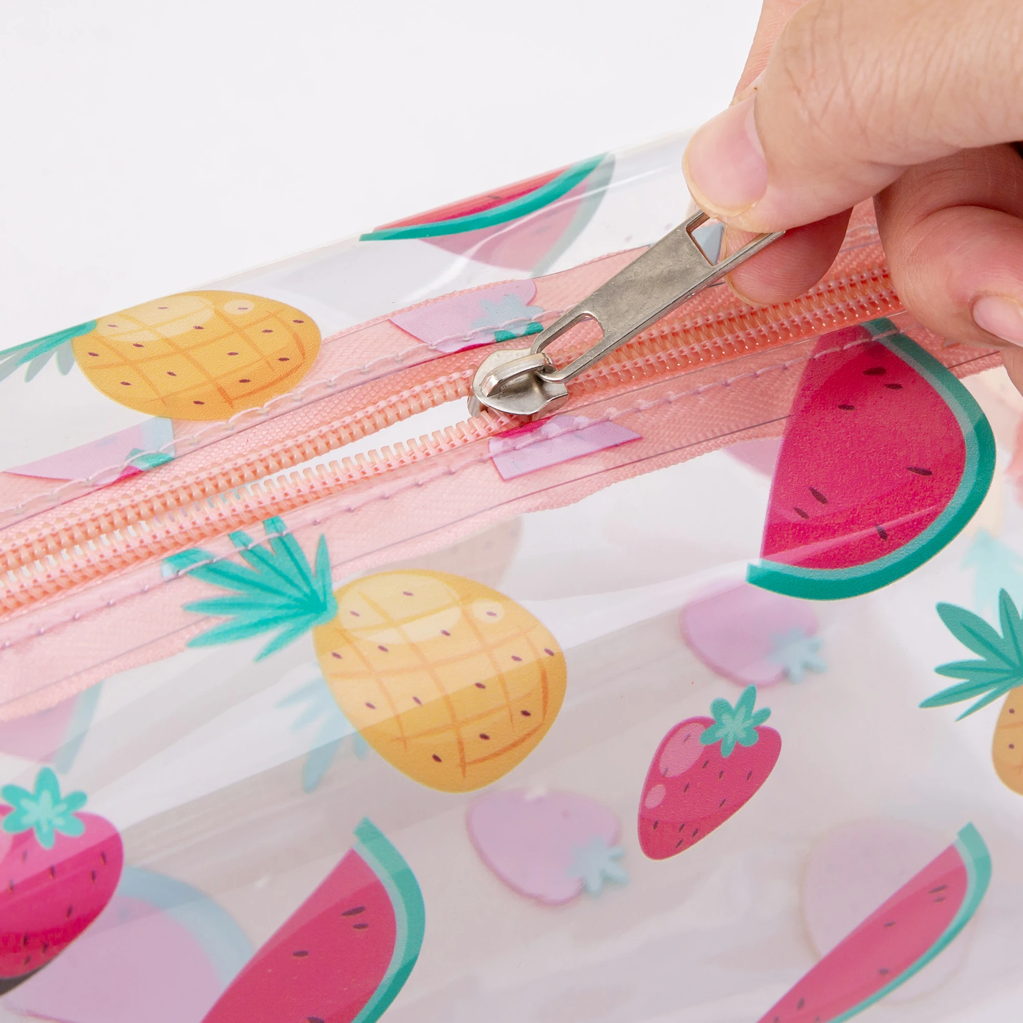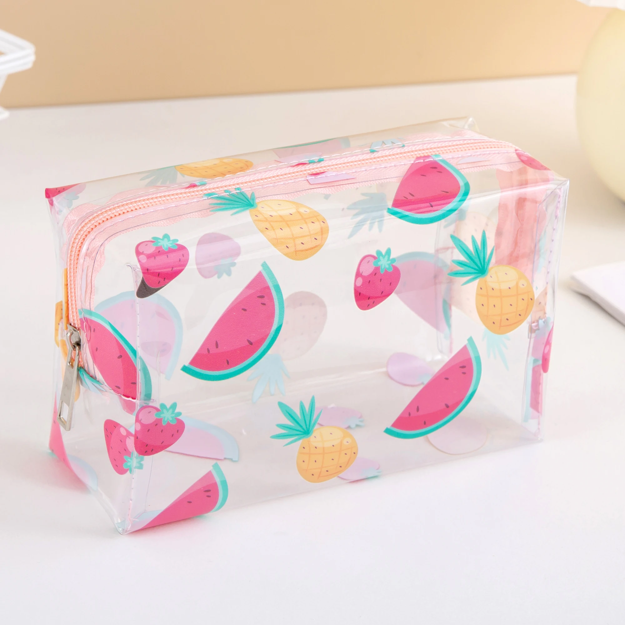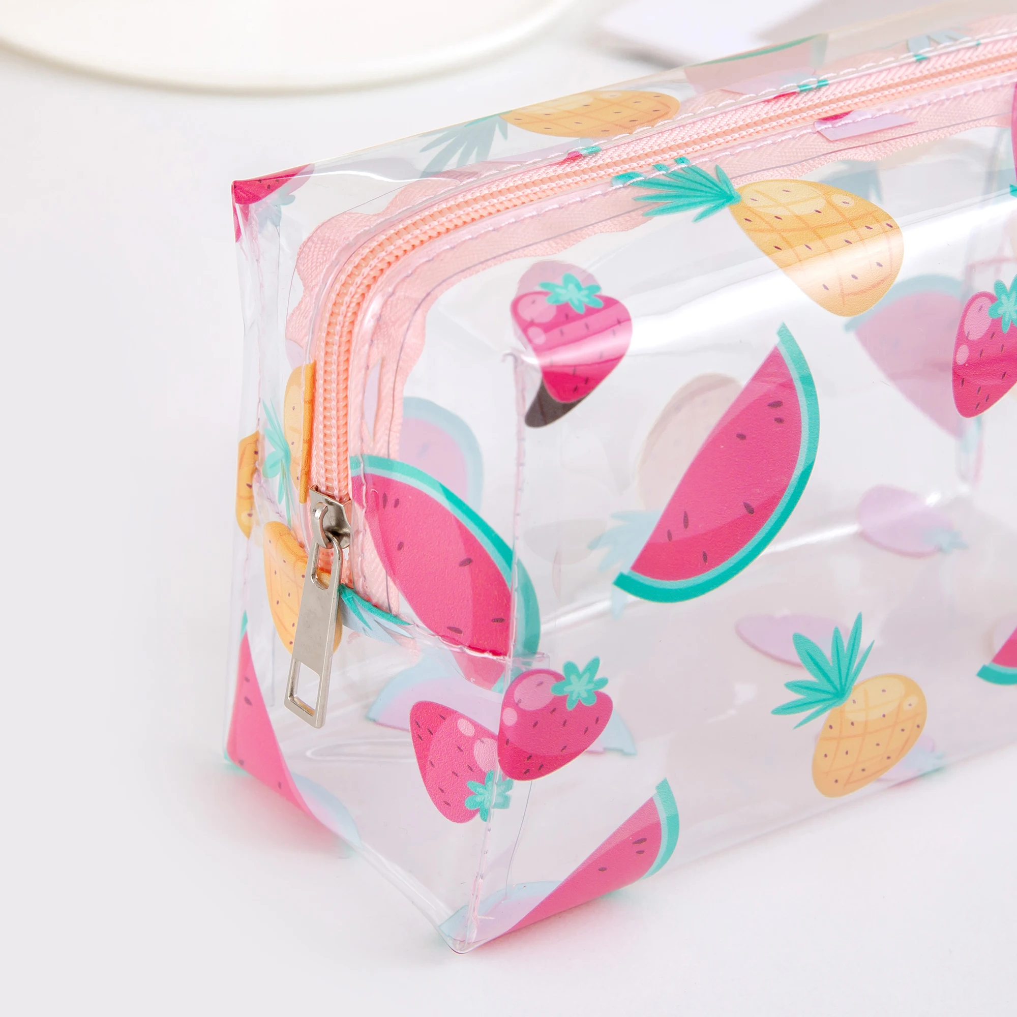 Summer Cute Waterproof Clear printing Cosmetics Bag PVC Zippered Toiletry Carry Pouch for Beach Swimming Travel
